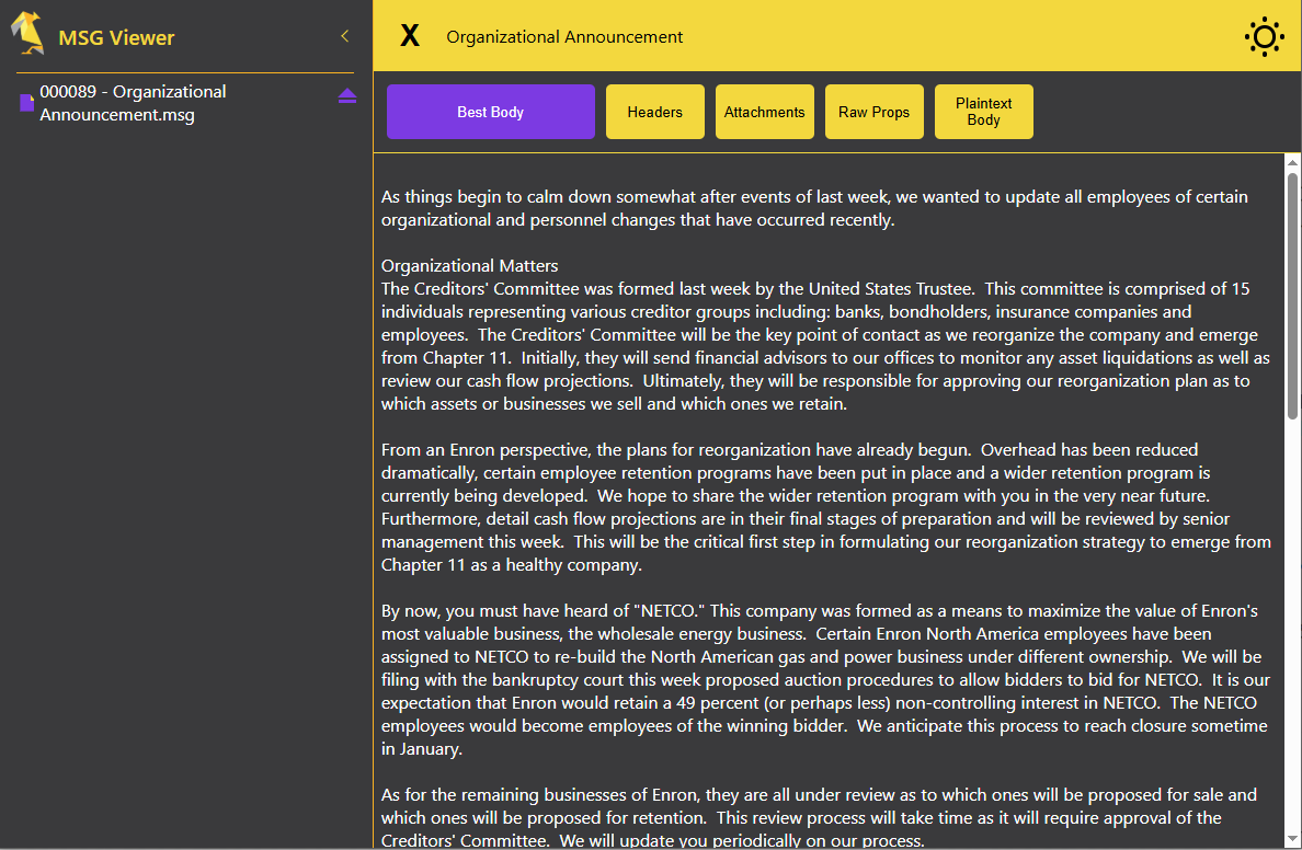 Unlike Outlook or conversion utilities, we leave the original MSG untouched. Perfect for eDiscovery integrity.